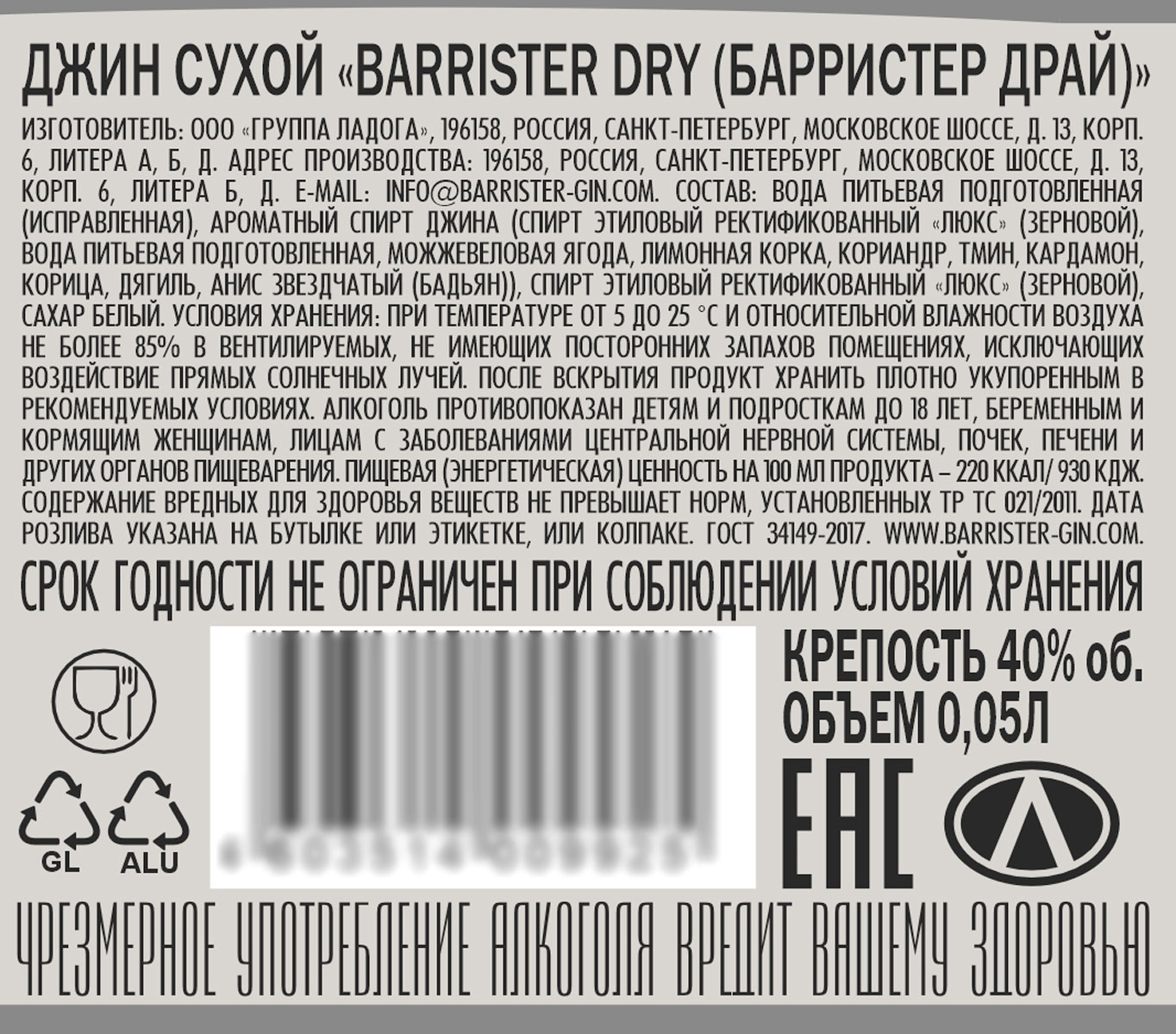 Джин Барристер Драй 0,05 л
