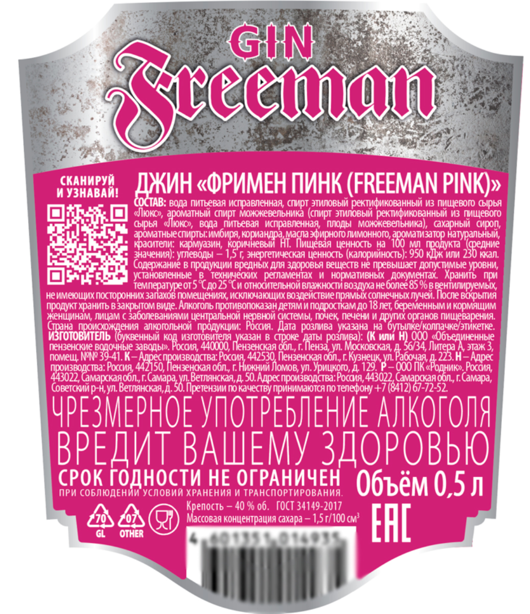 Джин Фримен Пинк 0,5 л