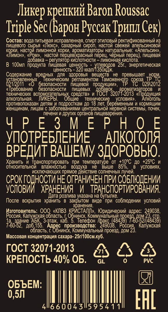 Ликер Барон Руссак Трипл Сек 0,5 л