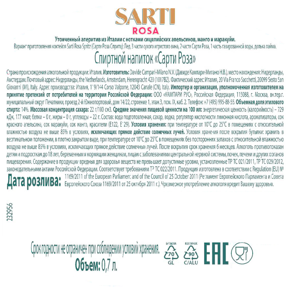 Sarti Rosa Спиртной напиток