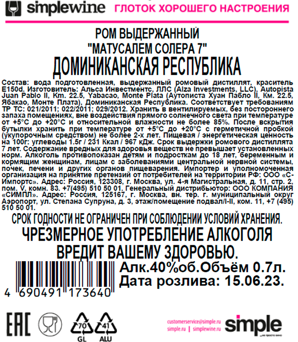 Ром Матусалем Солера 7 лет
