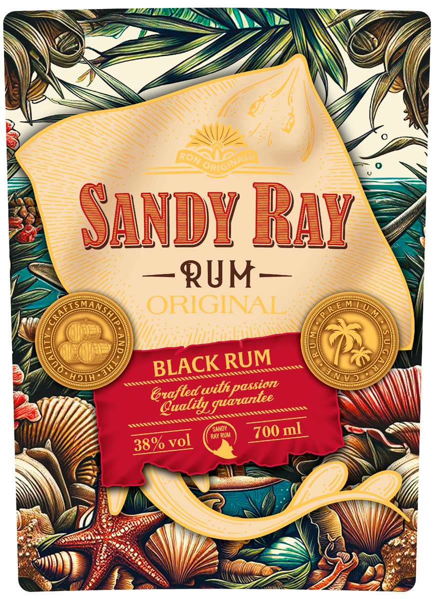 Sandy Ray – насыщенный ром с характерной пряной палитрой и благородной дубовой терпкостью. Его сложный букет раскрывается нотами ванили и корицы, оставляя долгое теплое послевкусие. Он создан для тех, кто чувствует зов океана в своей крови! Как песчаный скат скользит между рифами и безднами, так и ром соединяет в себе дерзкий дух приключений с благородной выдержкой.