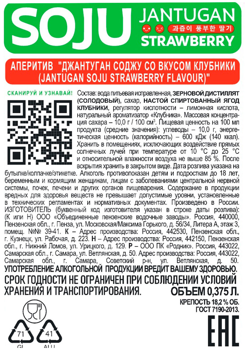Аперитив Джантуган Соджу клубника