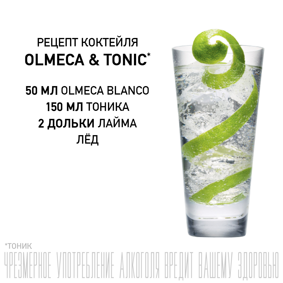 Текила OLMECA BLANCO состоит на 60% из спирта, произведенного из голубой агавы, и на 40% из спирта, произведенного из сахарного тростника. Вкус напитка сладкий, слегка дымный, с оттенком меда. Аромат свежий, травянистый, с нотками зеленого перца и мягкими цитрусовыми нотами. Рекомендуется подавать в чистом виде в шотах, а также в коктейлях. В магазинах может находиться текила крепостью 35% и 38%.