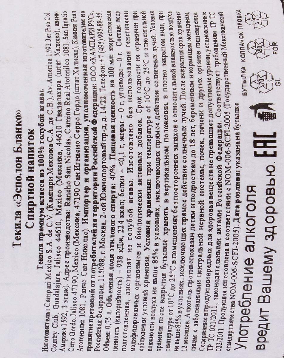 А ведь их три варианта BLANCO,РЕПОСАДО и AÑEJO. У Вас будет AÑEJO вообще не где не могу найти по Самаре именно ESPOLON AÑEJO
