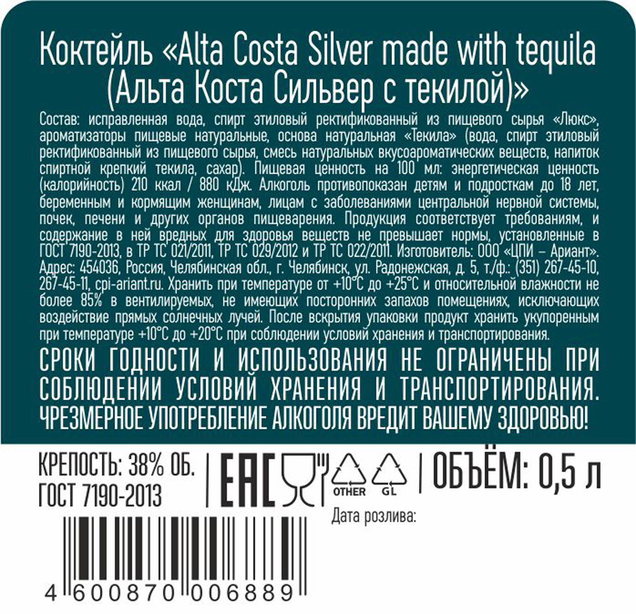 Коктейль Альта Коста Сильвер с текилой 0,5 л
