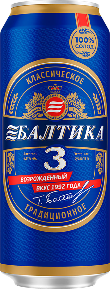 Пиво Балтика Классическое №3 светлое пастеризованное ж/б