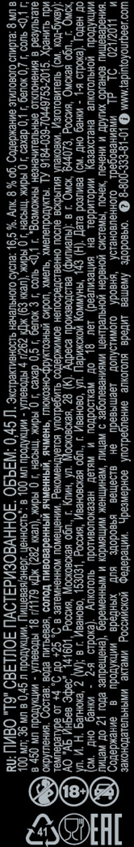 Пиво Т9 светлое пастеризованное ж/б 0,45 л