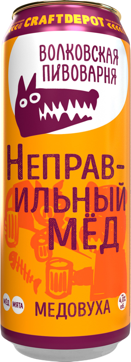 Напиток брожения медовый Волковская Пивоварня Неправильный Мёд пастеризованный фильтрованный