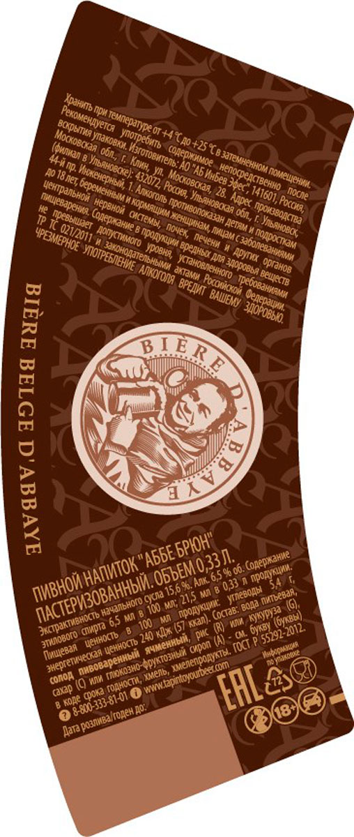 Напиток пивной Аббе Брюн пастеризованный ст 0,33 л