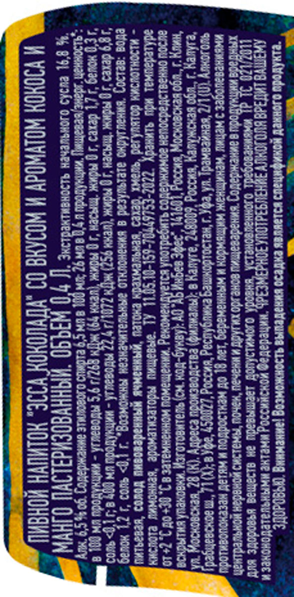 Напиток пивной Эсса Коколада кокос манго ст 0,4 л