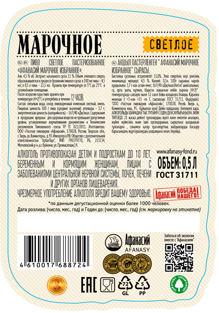 Афанасий теперь то же самое, что и Балтика, это не пиво, в моем понимании этог слова.