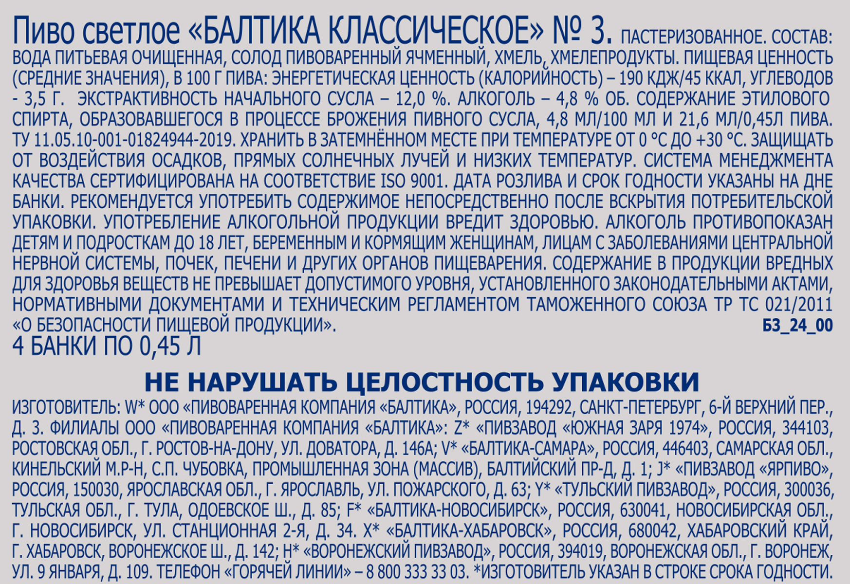 «Балтика №3 Классическое» – классический лагер с выраженным ароматом хмеля, сваренный с использованием только 3 ингредиентов: солода, хмеля и воды. «Балтика №3» обладает сбалансированным солодовым вкусом с приятной хмелевой горечью и ароматом.