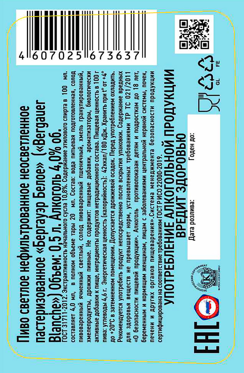 Пиво Бергауэр Белое светлое ст