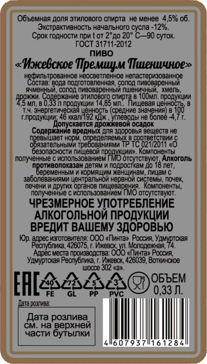 Пинта Ижевское Премиум Пшеничное