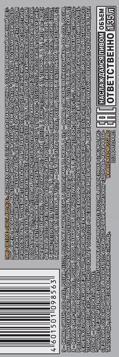 Пиво Охота крепкое светлое ПЭТ