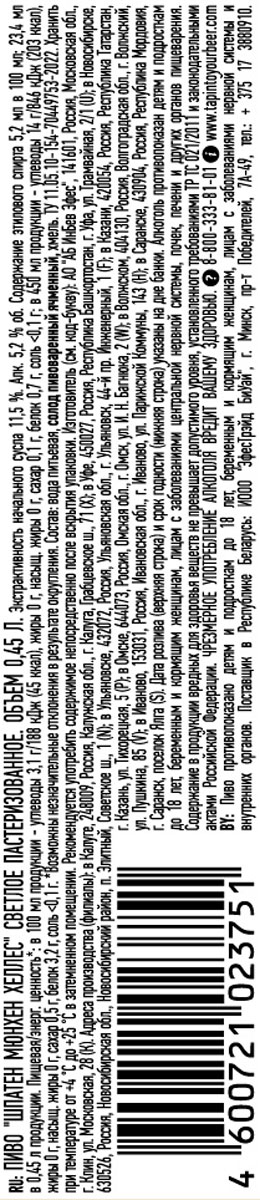 Пиво Шпатен Мюнхен Хеллес светлое ж/б 0,45 л