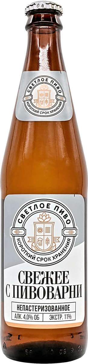 Пиво «Свежее с Пивоварни» приготовлено по уникальной рецептуре с использованием только отборного хмеля и солода. Короткий срок хранения и отсутствие пастеризации делают вкус этого свежего пива легким и мягким, с легкой горчинкой хмеля в послевкусии.