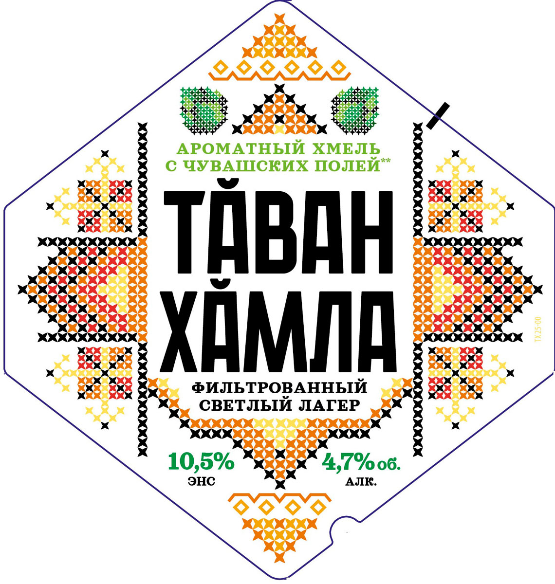 Легкий светлый фильтрованный лагер с ненавязчивой травянистой горчинкой и тонким ароматом хмеля. Хмель сорта «Подвязный» для пива «Таван Хамла» выращен силами собственного Агропроекта в России на полях Республики Чувашия. Название «Таван Хамла» обозначает «Родной Хмель». Композиция этикетки — сдержанная и благородная, выполнена в древних рунических мотивах. Она, словно дубовый бочонок, хранит в себе дух настоящего чувашского пивоварения: искреннего, как земля, и звонкого, как песня над Волгой.