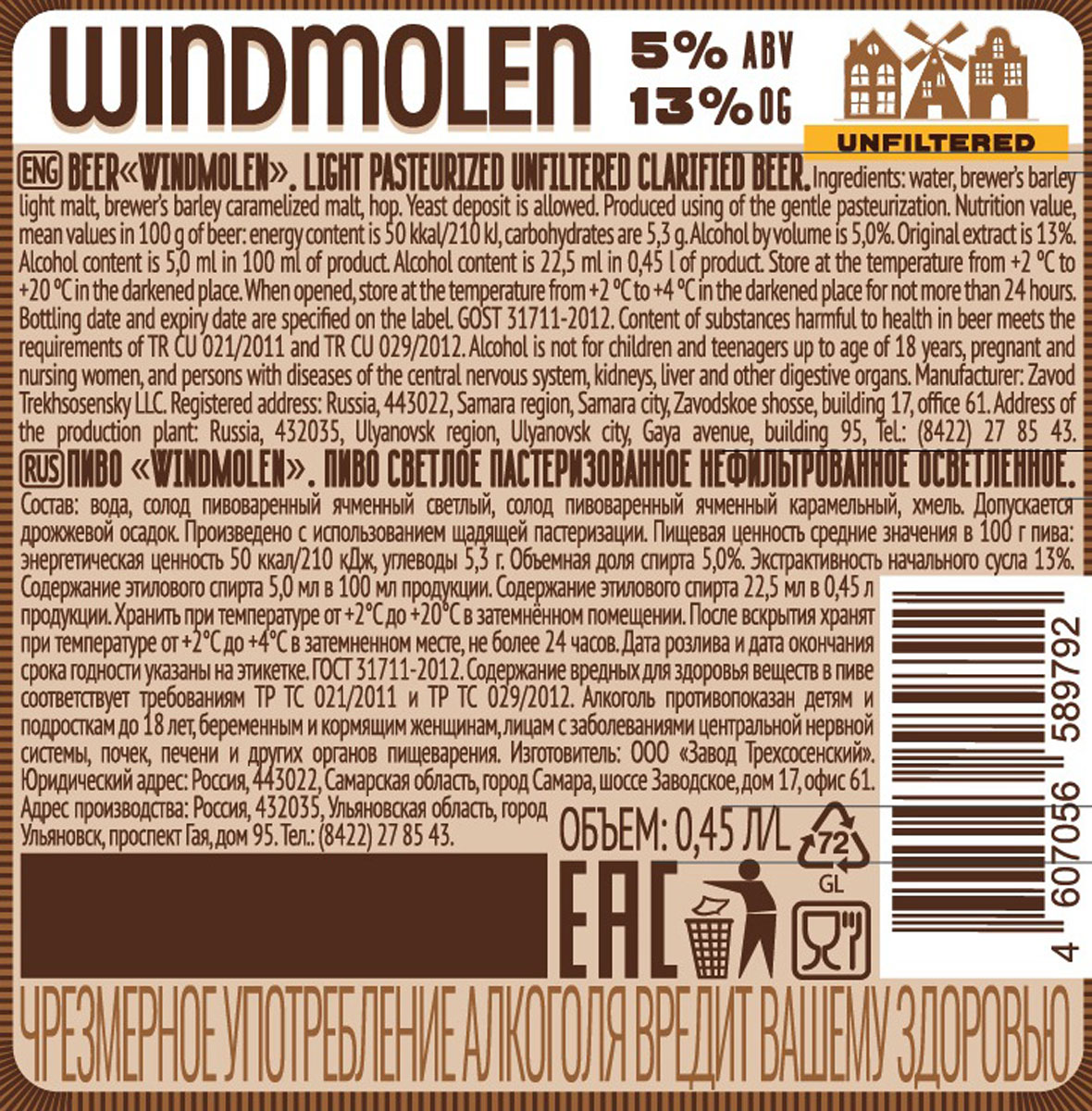 Виндмолен светлое нефильтрованное