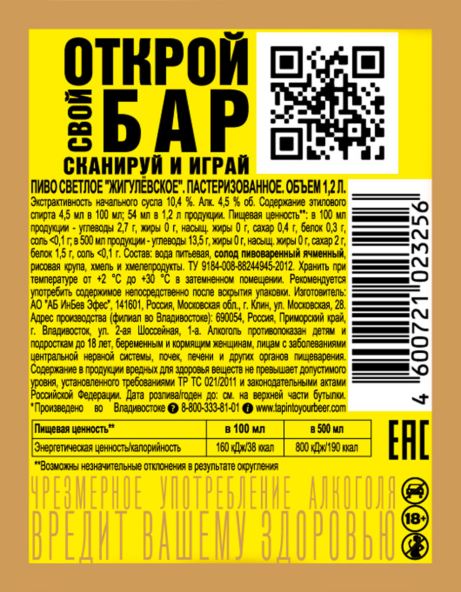 Пиво Жигулевское Приморское светлое пастеризованное