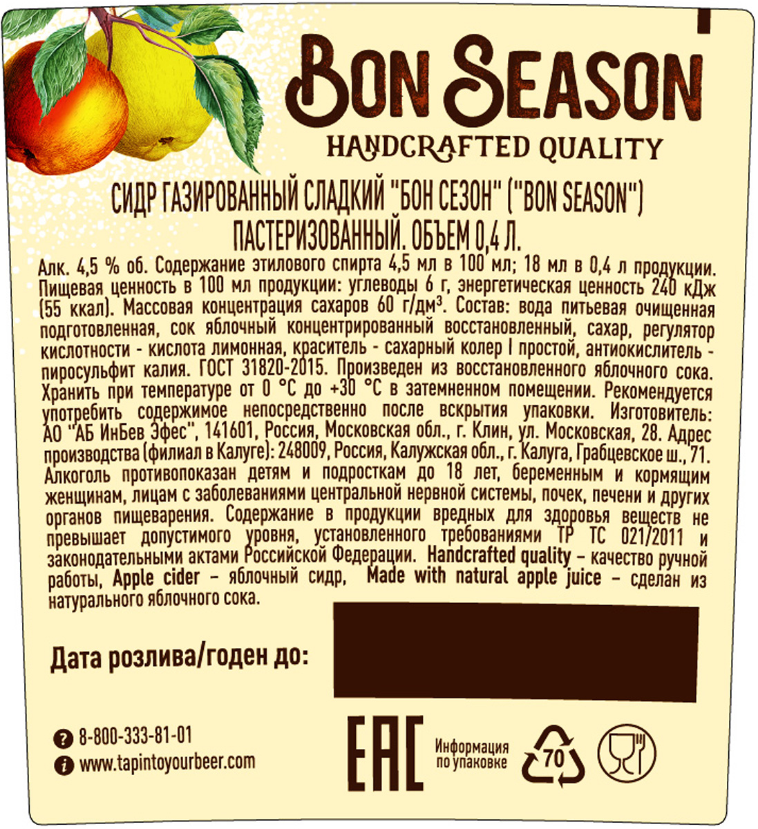 Бон Сезон сидр сладкий