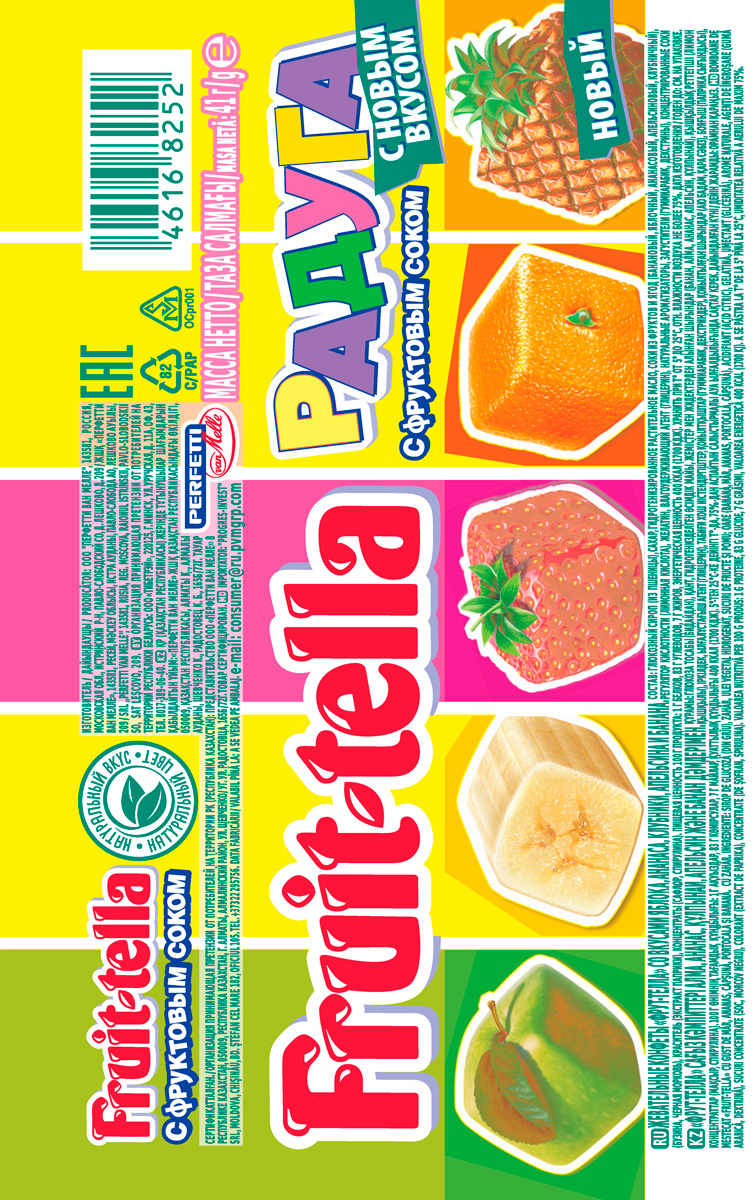 Жевательные конфеты с фруктовым вкусом. Изготовлены на основе натурального сока и натуральных ароматизаторов.