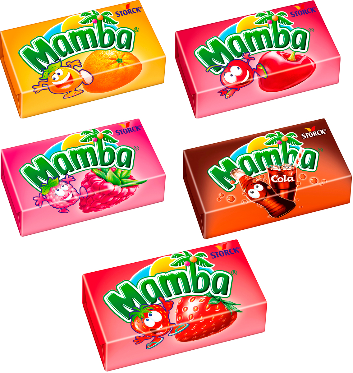 «Мамба» — это фруктовые жевательные конфеты. Есть 5 сочных вкусов: клубника, малина, вишня, апельсин и кола. Попробуйте скорее, ведь «Мамбу» любят все!