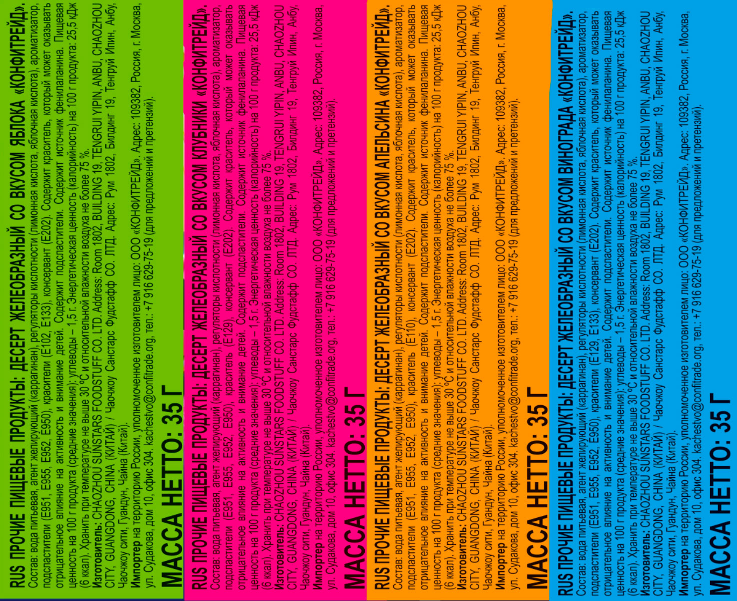 Легкое фруктовое желе, которое понравится и детям, и взрослым. Попробуйте яркие вкусы: нежное яблоко, сочная клубника, солнечный апельсин и сладкий виноград. Удобные порционные стики позволяют брать сладость с собой куда угодно.