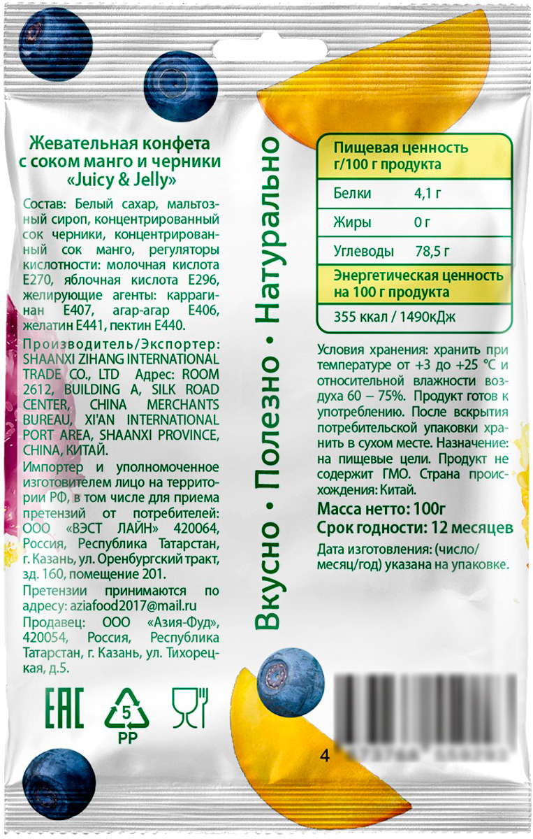 Жевательные конфеты с соком манго и черники