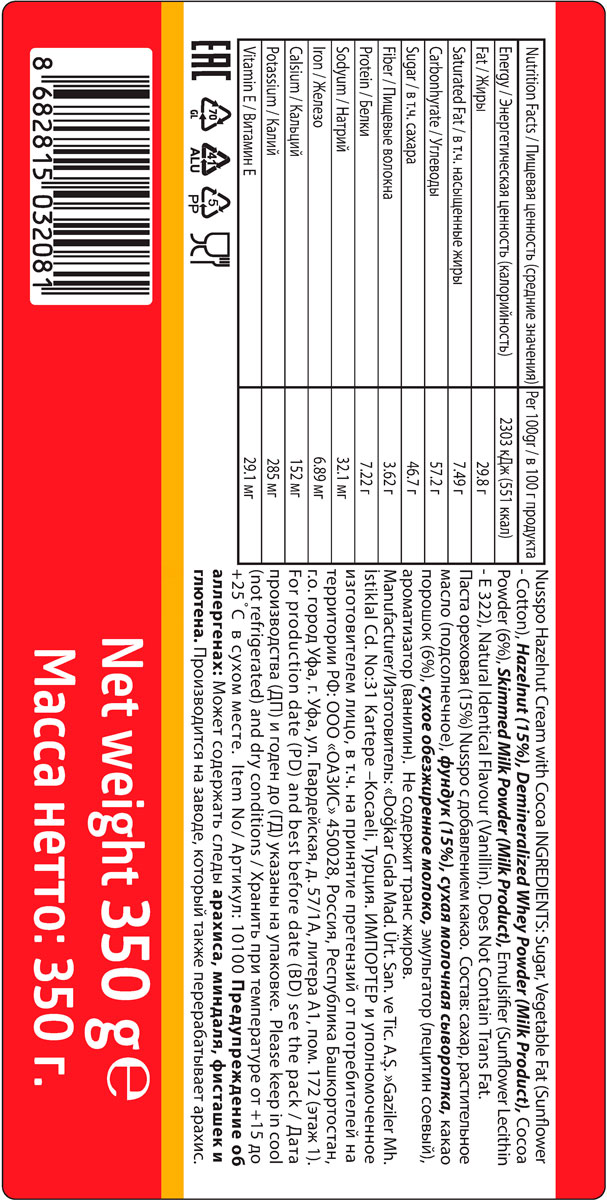 Ядрено сладкая паста. Такое ощущение, что ем чистый сахар в масле. Не зашло.