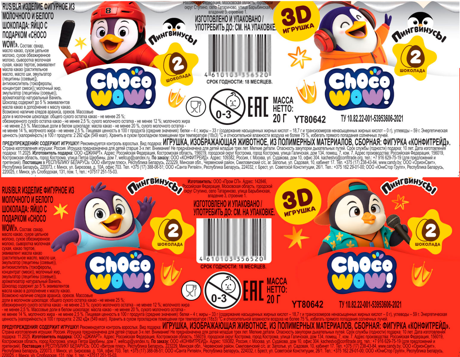 Уникальное шоколадное яйцо: одна половинка — белый шоколад, вторая — молочный шоколад. Яйцо 3 в 1. Во-первых, это приятный подарок для малыша, во-вторых, это вкусное лакомство из шоколада, в-третьих, внутри спрятан коллекционный сюрприз!