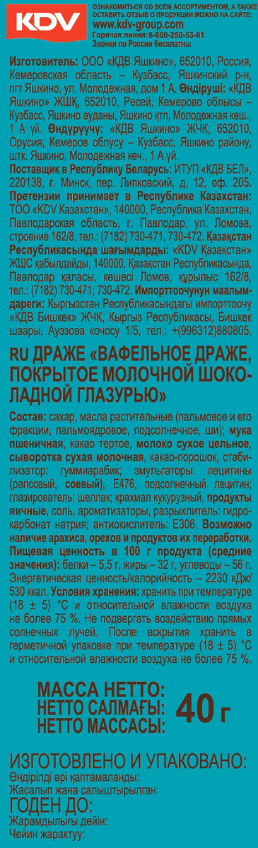 Драже Yota вафля и молочная глазурь 40 г