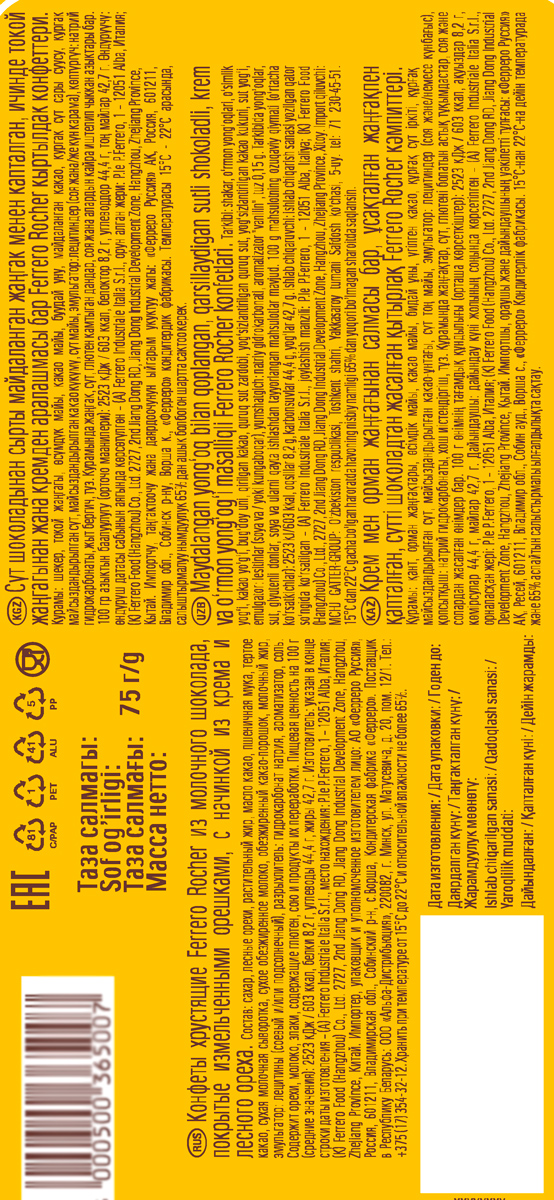 Откройте для себя восхитительное сочетание обжаренных лесных орехов в нежном молочном шоколаде и хрустящих вафель. Набор из 6 бесподобных конфет — идеальный выбор, чтобы побаловать себя или разделить момент с близкими. Ferrero Rocher — это шедевр вкуса, наполняющий блаженством каждое мгновение.