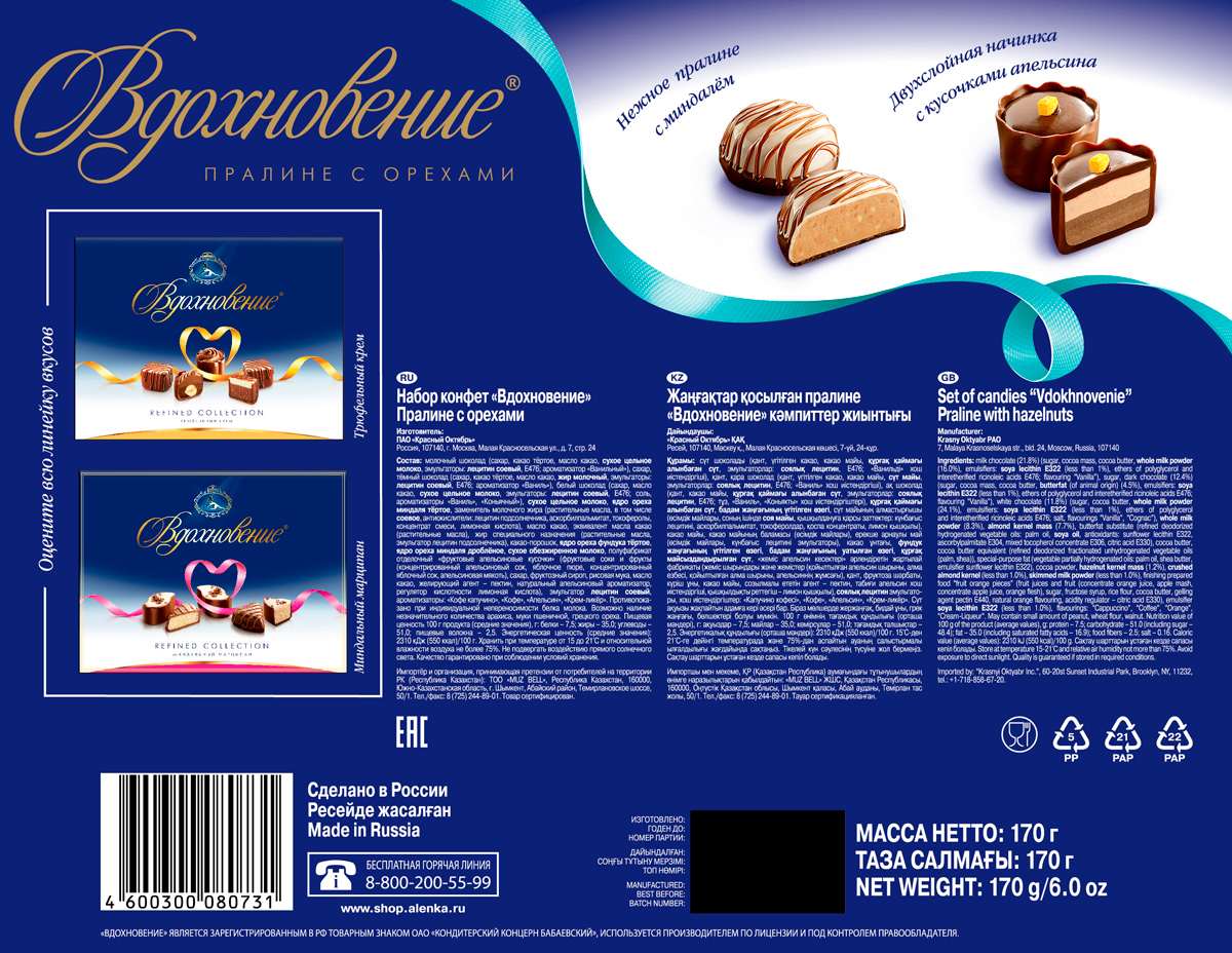 Набор конфет Вдохновение Пралине с орехами