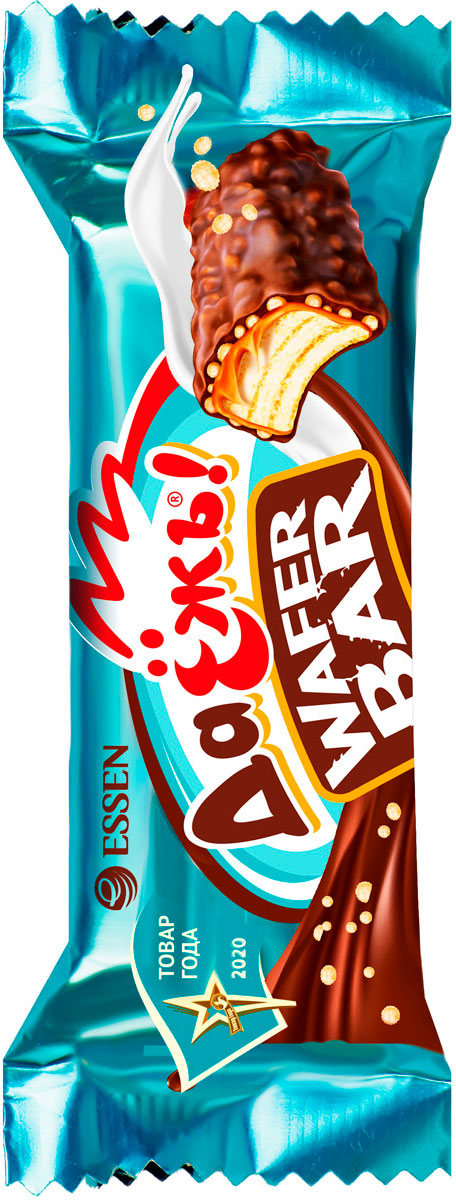 ДАЁЖЪ — вафельный батончик, состоящий из хрустящих вафель, нежной ореховой или сливочной начинки и покрытый мягкой тянущейся карамелью, усыпанной хрустящими криспи или орешками. Удобный формат для перекуса на ходу! Штучный продукт.