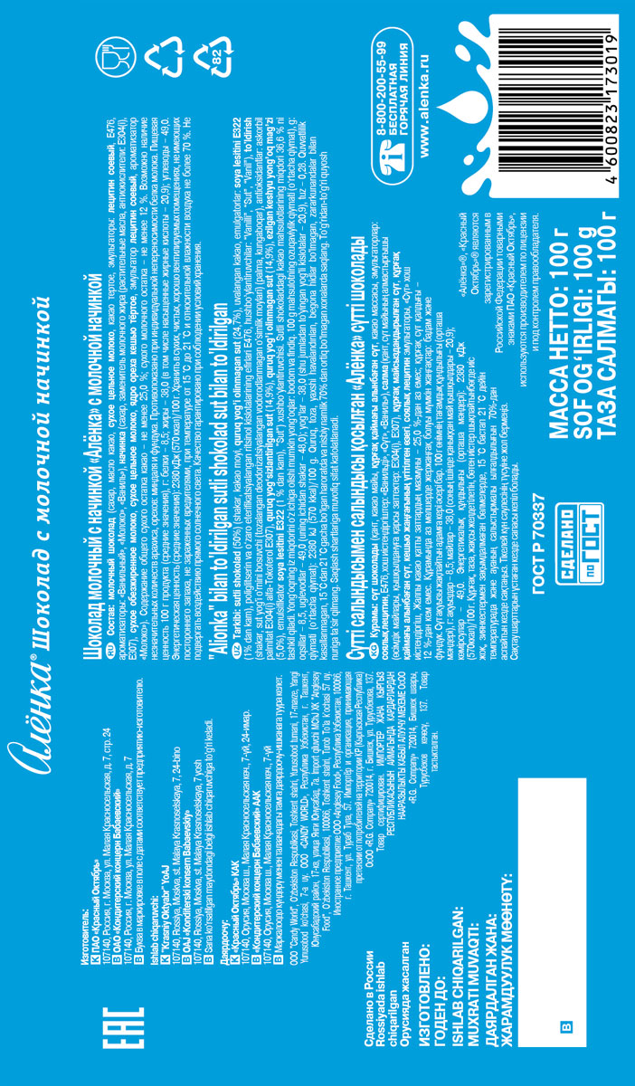Знаменитый молочный шоколад «Аленка» в стиках – классический вкус в новой удобной форме. Тонкие аккуратные палочки чистого молочного шоколада, изготовленного по оригинальной рецептуре, упакованы в индивидуальную обертку и сложены вместе в коробочку с узнаваемым рисунком девочки в платочке. Любимая «Алёнка» на современный лад.
