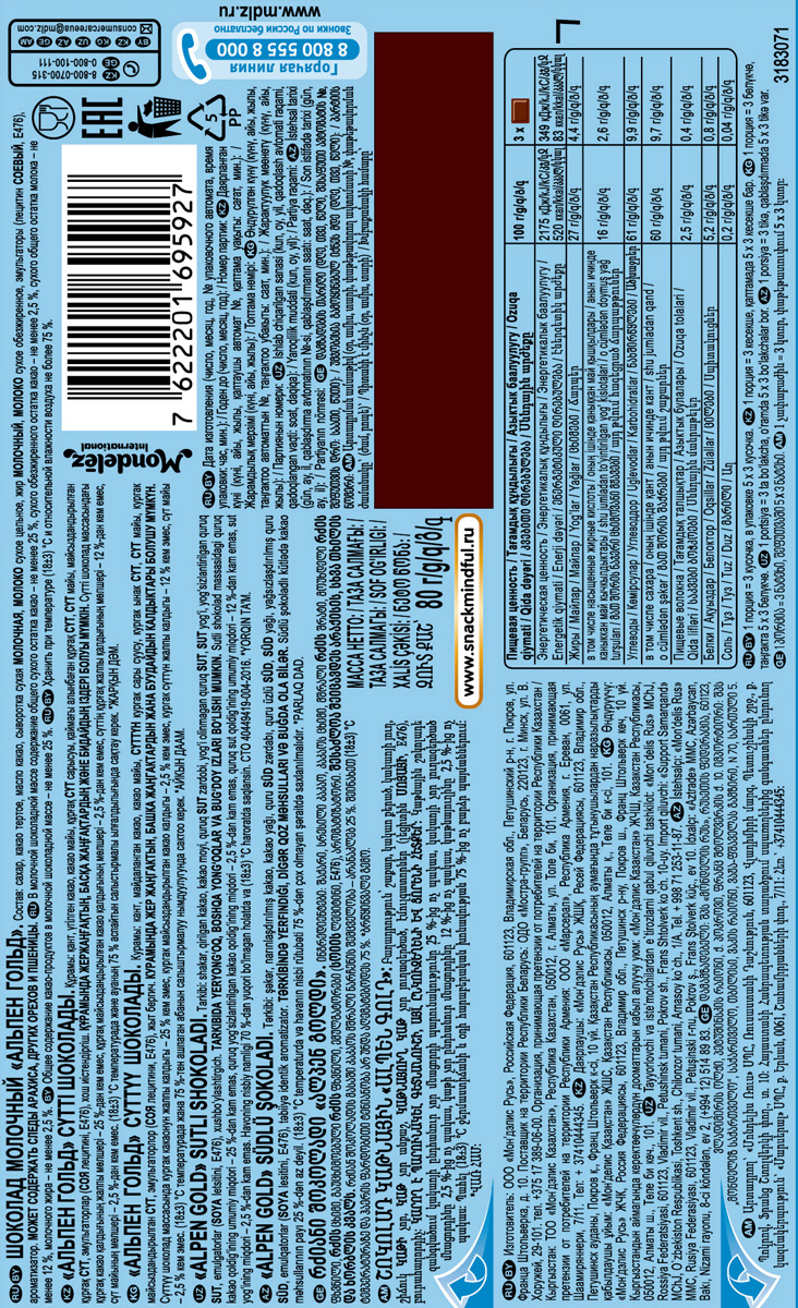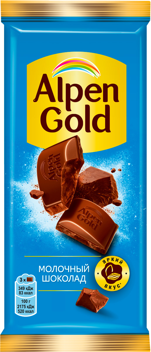 Молочный шоколад Alpen Gold имеет классический нежный вкус традиционного молочного шоколада. Этот изысканный десерт так и тает во рту, оставляя приятное и нежное послевкусие, раскрывая один за другим свои оттенки. Побаловать себя плиткой молочного шоколада можно за завтраком или на прогулке, взять с собой в путешествие или угостить близких за вечерним чаепитием.