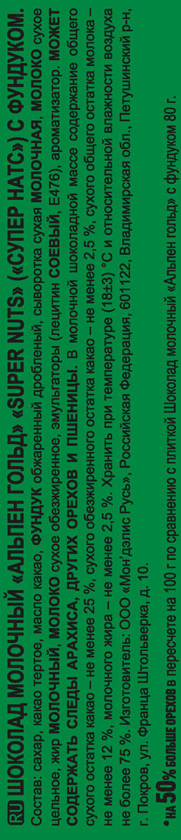 Шоколад Альпен Гольд Супер натс молочный с фундуком