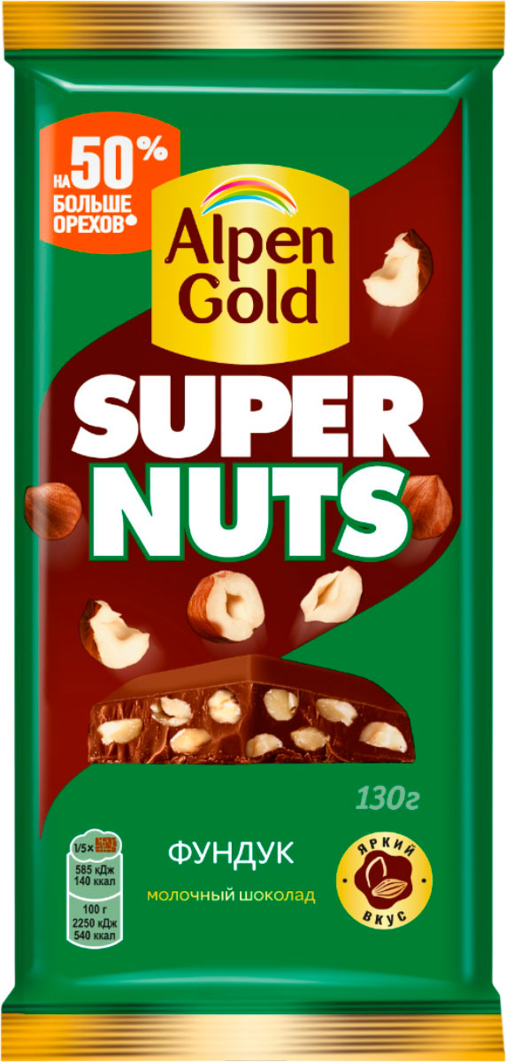 Шоколад Альпен Гольд Супер натс молочный с фундуком 130 г