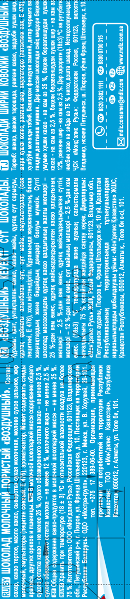 Шоколад Воздушный молочный пористый