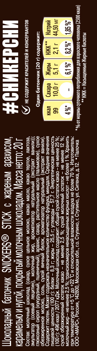 Ты – не ты, когда голоден. Не тормози, Сникерсни в новом формате! Snickers – это самый популярный в мире шоколадный батончик. Snickers идеально подходит для людей, ведущих активный образ жизни, и тех, кто любит проводить время в компании друзей.