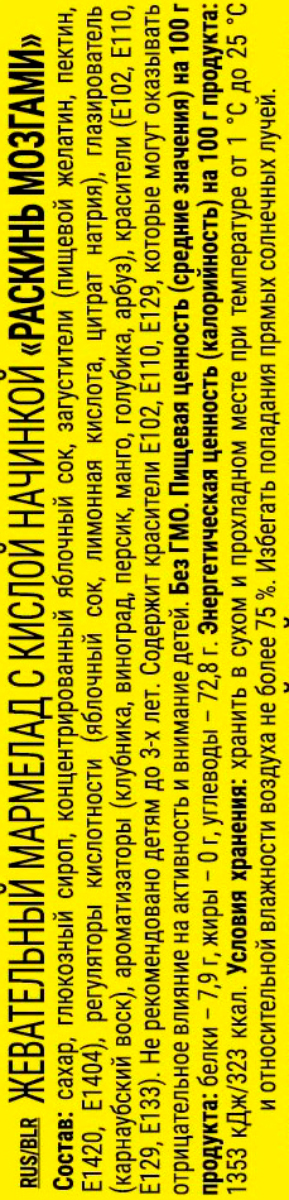 Жевательный мармелад с кислой начинкой «Раскинь мозгами» — это яркое и необычное лакомство, которое превращает каждый перекус в маленькое приключение. Мягкая, упругая текстура мармелада сочетается с неожиданно яркой кислой серединкой, создавая эффект контраста, от которого сложно оторваться. Такой мармелад отлично подходит для веселых компаний, подарков или просто для того, чтобы разбавить день чем-то необычным и вкусным.