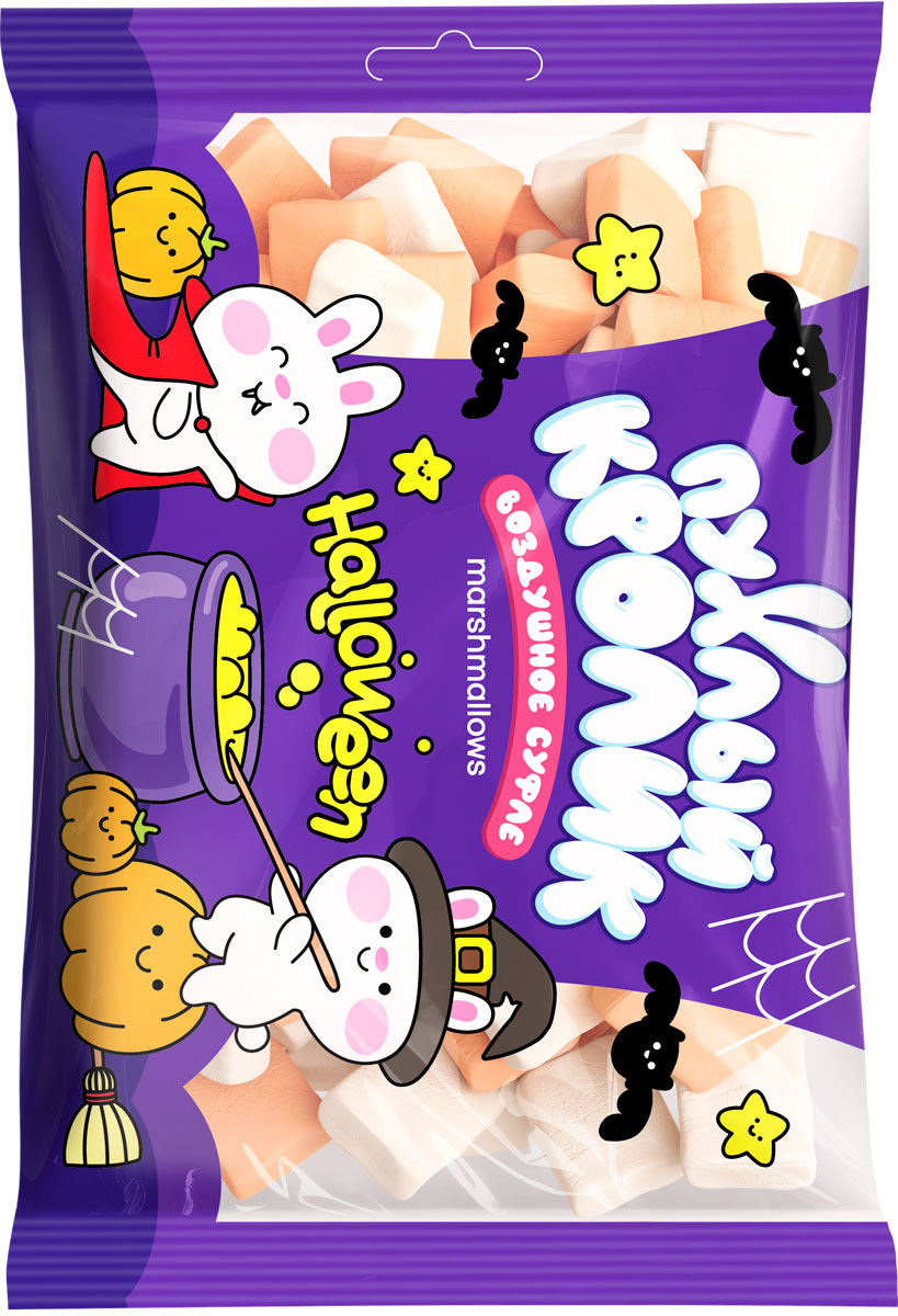 Нежный, воздушный маршмеллоу со вкусом пломбира, тыквы и манго с необычной формой конфет в виде ластика в яркой красочной упаковке с тематикой Хеллоуина.