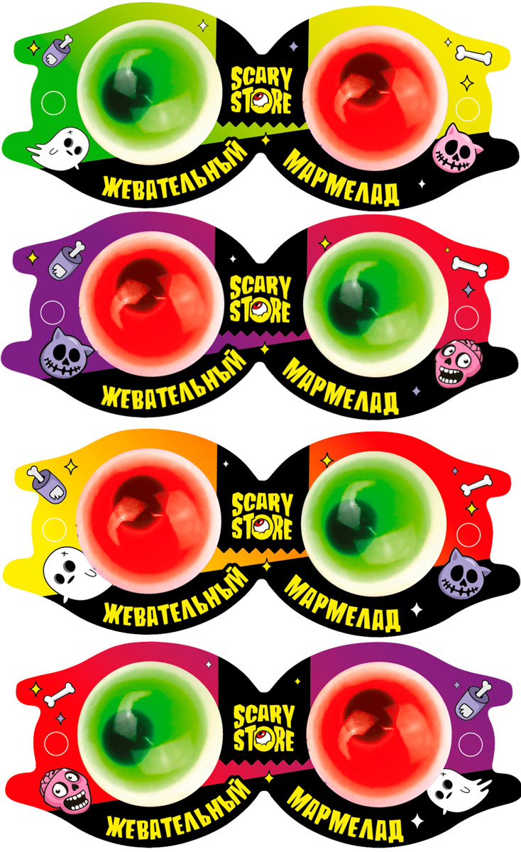 Оригинальный жевательный мармелад в форме глаз в блистере, повторяющем форму стильной маски. Придется по вкусу маленьким и бесстрашным искателям приключений. Идеально подходит для тематических вечеринок, подарков или просто для того, чтобы удивить своих близких!
