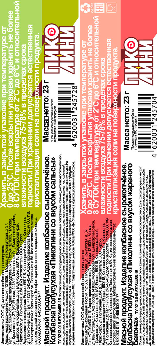 Колбаска Пиколини со вкусом сальсы/бекона
