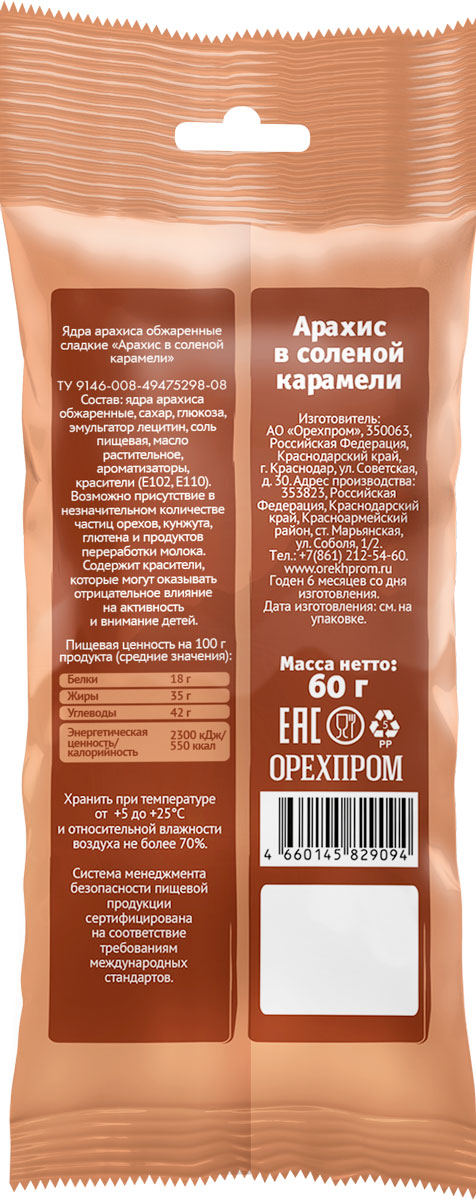 Арахис жареный сладко-соленый со вкусом соленой карамели — это невероятно вкусный, оригинальный и питательный перекус, который не оставит никого равнодушным. Достаточно сладкий и в меру соленый арахис – это настоящее удовольствие для ваших вкусовых рецепторов.