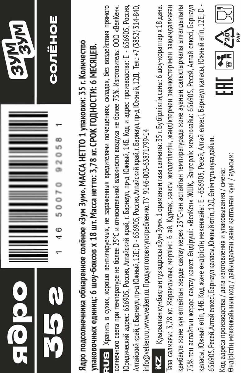 Зум Зум ядра подсолнечника соленые