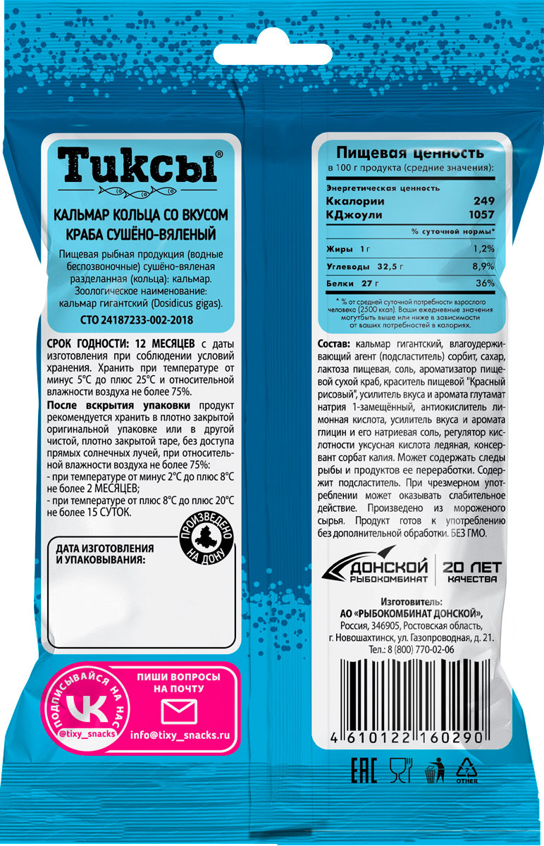 Кальмар Тиксы кольца со вкусом краба сушено-вяленые