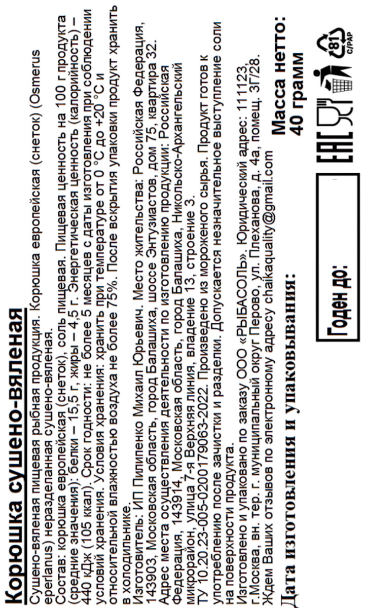Рыба Соль Корюшка вяленая